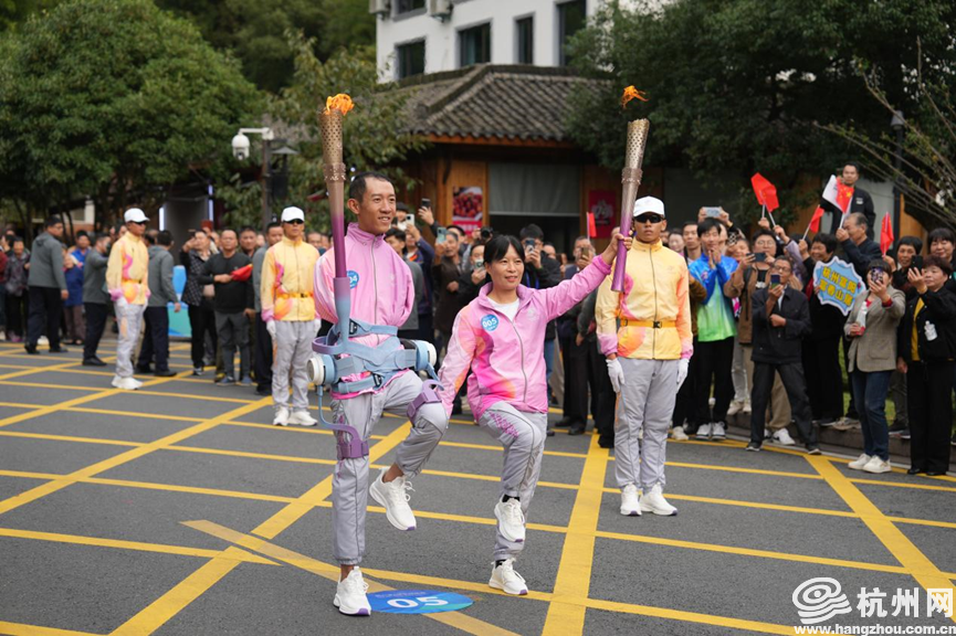 借助腰部搭载的火炬适配器,彭超“举”着火炬步伐坚定地向前奔跑,50米的距离,对他来说弥足珍贵。“今天我还去了富春江畔,仿佛走入现代版《富春山居图》,人在画中游的感受和平时用屏幕看画完全不同,不禁感叹岁月静好。火炬传递的每一秒、每一个动作都历历在目,我要把今天发生的细节都记在心里。”