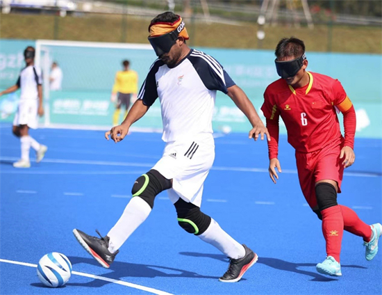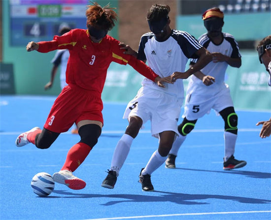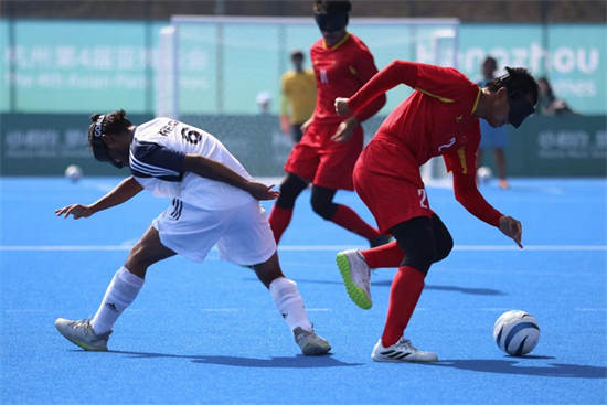10月23日,杭州亚残运会盲人足球比赛开赛,首场比赛是中国盲人男子足球队对阵印度队。中国队的综合实力更胜一筹,发动了多次颇具威胁的进攻,最终以4:0战胜对手。