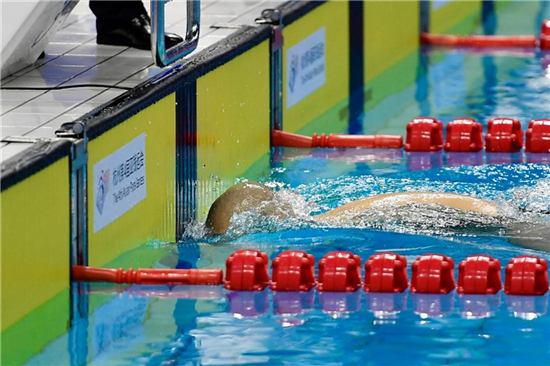 用嘴巴咬住毛巾出发,用头撞击泳池壁结束,郭金城比赛时的“标志性动作”让观众看得热血沸腾,同时又有点“心疼”。