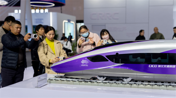 在轨道交通馆内,镇馆之宝“复兴号亚运动车组产业链”系国内首次“全景”展出。