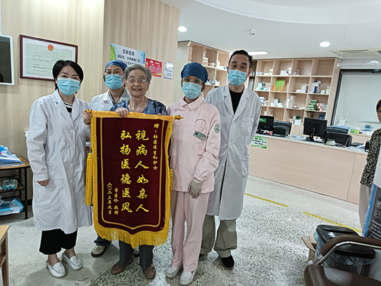 独居老人章奶奶,今年80多岁了,患有“习惯性下颌脱位”。平时打个哈欠就会“掉下巴”(下巴脱臼),医学上称为下颌(半)脱位。近日,杭州市北山街道友沿社区卫生服务站帮她解决了这件烦心事。章奶奶为她们送上“视病人如亲人 弘扬医德医风”的锦旗,以表感激之情。