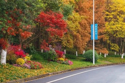 据了解,为了助力“良渚论坛”的举办,余杭区城管局联合良渚街道积极开展了路段和节点的绿化景观提升改造工程。例如,通过运用简洁、立体、节奏、韵味的艺术手法,结合了良渚的文化意象和实际地形、环境的特点,设计师采用了层次互补、色彩缤纷、宽窄不一的曲线、直线或圆圈花带,并融入了良渚文化符号,将形、色、香都融入到设计中,巧妙地融合了古今现代元素,创造出色彩缤纷、视觉效果丰富的植物群落景观,给人们带来了缤纷的观感,实现了“共建、共享、共荣”的愉悦感受。