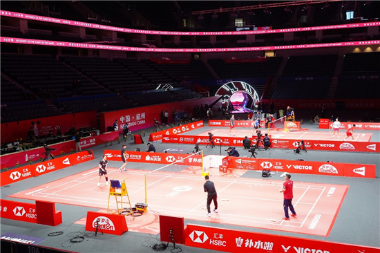 和其他大多数比赛不同的是,世界巡回赛总决赛的场地为红色,这让首次参加总决赛的新手们觉得很新鲜。冯彦哲、梁伟铿、王昶等队员都表示环境有点陌生,不太适应,需要尽快调整。黄东萍则认为,在这个场地打比赛会更兴奋,让这次比赛显得更加特别。