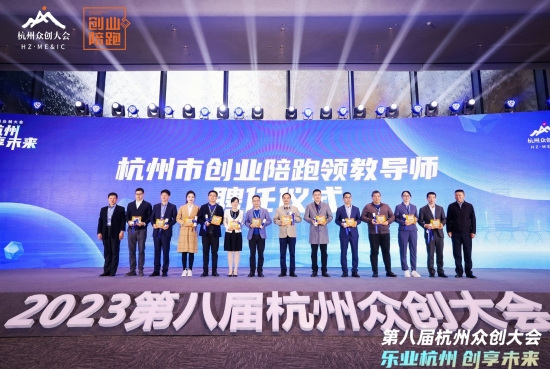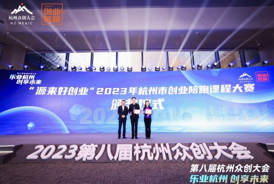 大会为首届杭州市创业陪跑课程大赛的获奖选手举行颁奖仪式,为首批杭州市创陪领教导师颁发聘书。