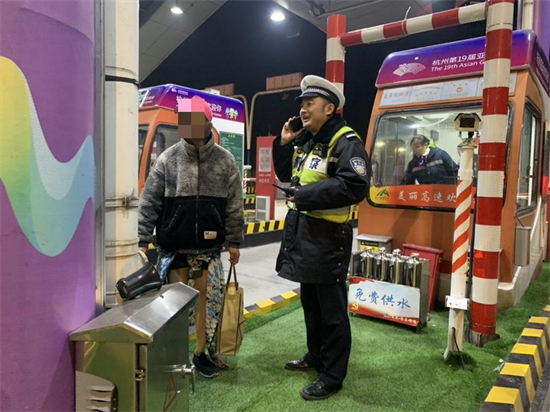 近日,杭州公安高速交警三大队民警巡逻至杭新景高速新安江收费站时,接到一则报警求助:有人在高速公路收费站迷路了,回不了家。
