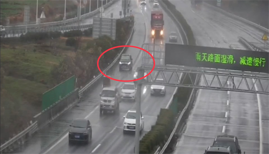 2月3日中午,杭州公安高速交警三大队综合勤务室通过公共视频巡查时发现,在杭新景高速上,一辆黑色小车在应急车上倒车,并开出了“蛇形走位”。此时正值春运大流量,天空还下着小雨,黑色小车倒车过程中还时不时占用第二车道,过往车辆纷纷闪灯提醒。