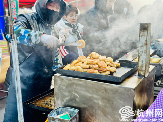 拳头大的麻团两块钱一个,五块钱三个;表皮金黄的油炸糕还热乎着,一块钱一个;香甜不腻的糖蜜果,一块钱一个;铁岭地道的牛肉火勺,便宜点的卖八毛钱一个……东北的美食,不仅有自己的招牌,也懂得“融会贯通”。比如,在彩虹桥下的早市摊上,记者就看到杭州小笼包。“杭州小笼包多闻名呢,我就是吃过才支起这个小铺子,要说味道咋样,要不你买点尝尝,绝对和东北大包子不一样,咱们的面和肉馅都讲究一个细腻。”面对大哥的热情邀请,记者还是没买上一笼尝尝味道,毕竟在杭州吃的次数太多了。
