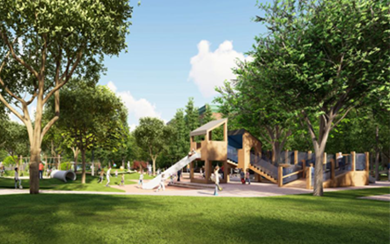 公园还将对附属配套设施进行适儿化改造,在公厕设置儿童厕位和洗手、冲脚池。设置入口标识,增设监控与照明设备。并将现有绿地、灌木进行提升,为儿童打造便捷舒适、安全有趣、生态自然、文明友好的公园环境。