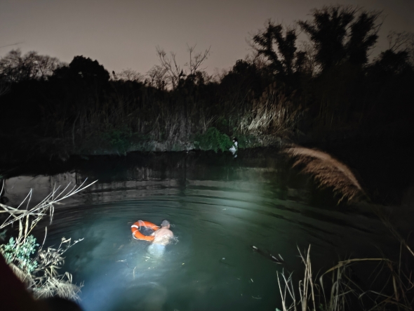 “当时落水女子正艰难地抓着河边树根挣扎漂浮在河面上,因为那里是野路,杂草丛生,平时无人涉足,夜间更是无人,一片黑灯瞎火里能找到人是万幸。”吴成忠说。