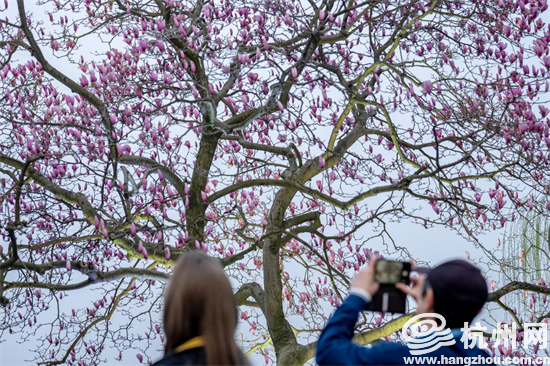 刚踏入春天的杭州,赏花是必不可少的节目了。这不,位于西湖国宾馆的已经60岁的网红粉玉兰花也迎来了盛花期。3月13日,记者在西湖国宾馆拍摄下这烂漫的一幕。