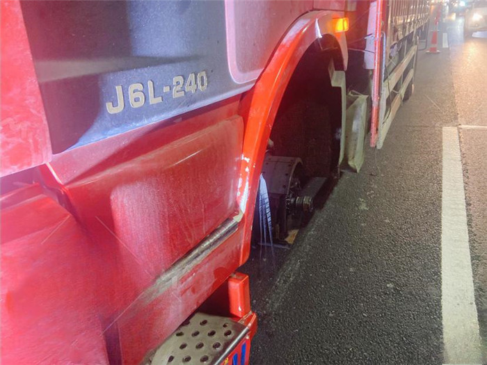 经过初步检查,事故原因系货车轴承缺油导致润滑不足,长时间运转后发热断裂,使得轮胎脱落。这一突发事件给过往车辆带来了极大的安全隐患,幸得交警及时处置,未造成更严重的后果。