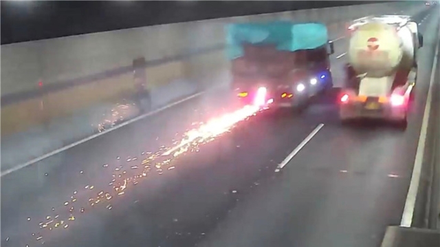 近日,在苏台高速往绍兴方向钱江通道内,一辆重型货车突然“瘸”了,左前轮胎在行驶中意外脱落,伴随着一路“火花与闪电”,场面十分惊险。幸运的是,杭州高速交警支队二大队迅速发现,及时消除了这一安全隐患。