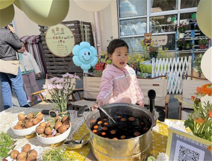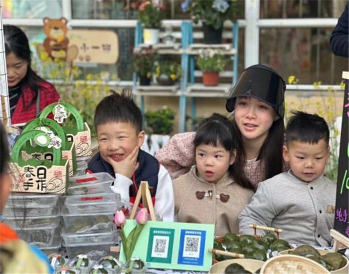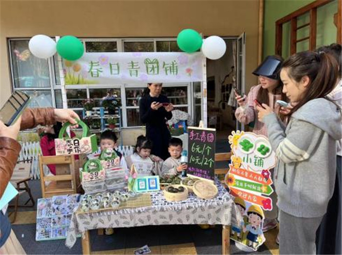 据悉,小班小朋友在集市上主打“吃春”,他们不仅做了青团,还现场制作春卷、花草蛋。“太美味了,比奶奶做的好吃!”小朋友玥玥一边吃一边称赞。