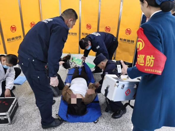 正在巡逻的打铁关站派出所民警仇光福与附近站务员组织人员拉起遮挡屏风,维持现场秩序,拨打120,救援工作有条不紊地开展。