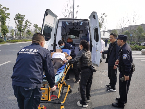 当天早上8点19分,医护人员赶至现场,众人合力将小高送上救护车,王女士陪同前往树兰医院进行紧急救治。待救护车离开后,刘先生才默默离开。记者了解获悉,小高身体已无大碍。