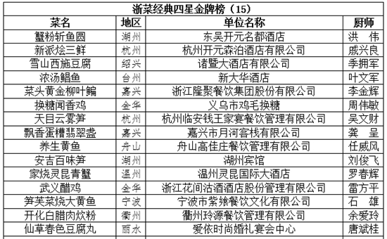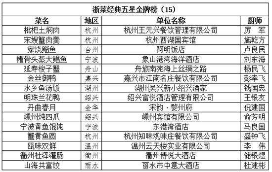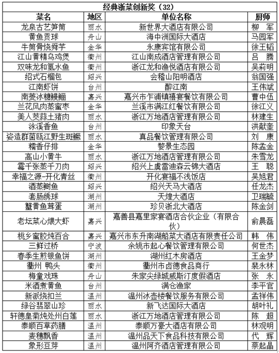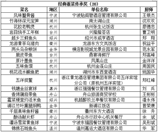 经过激烈的角逐,最终评选出浙菜经典五星金牌榜、浙菜经典四星金牌榜、经典浙菜传承奖、经典浙菜创新奖等。当天,为突出组织奖的单位颁发奖牌,并参观“味美浙江”美食市集和此次活动的参赛作品。