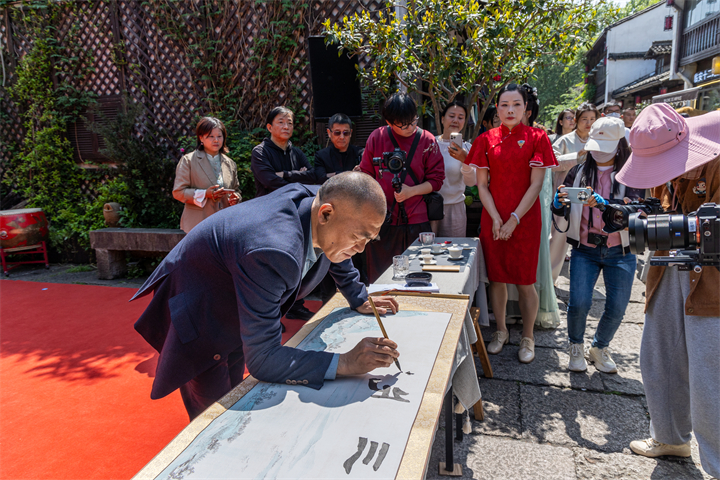 活动现场,一场诗歌与茶文化的盛宴更是将氛围推向了高潮。西泠印社江继甚老师以及拱墅区人大代表张海龙老师纷纷为小河茶汇挥毫泼墨,创作出赞颂茶文化的诗词佳作。
