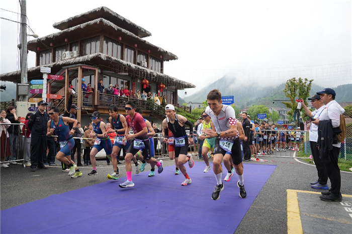 4月21日上午,“运动生仙里·全民奔共富”2024第四届桐庐·生仙里铁人三项赛在合村乡鸣枪开赛,伴着习习微风,500余名国内外“铁人”在山清水秀生仙里来了一场酣畅淋漓的“打铁之旅”。
