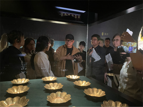 4月26日,由杭州市园文局主办的“走遍杭州的博物馆”探展活动走进杭州市临平博物馆“易水寒光——易县大北城宋辽金银器窖藏展”。文博推荐官跟随策展人、杭州市临平博物馆陈列艺术部主任严石涵欣赏华美精巧的金银器,了解金银器纹饰含义以及背后的历史。