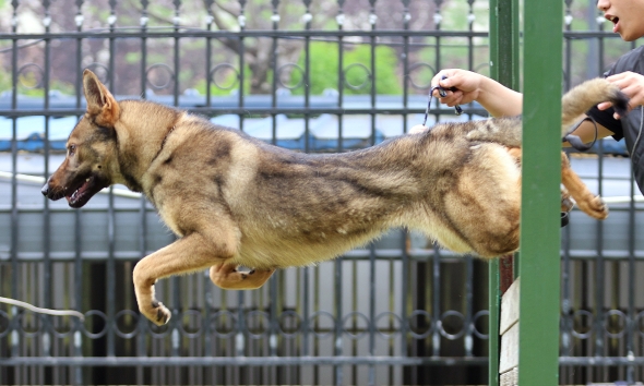 “让警犬适应行走在光滑的室内地面上或上下楼梯、敢搭乘电梯或者进入黑暗封闭环境,甚至从警用飞机上空降等等,没有对训导员的充分信任是做不到的。”苏柳月说,26岁的她也是地铁公安分局特警大队警犬训导员。
