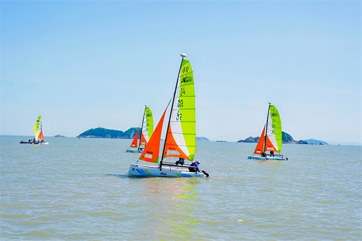 得天独厚的岸线沙滩,星罗棋布的大小岛屿,天青水蓝的宜人环境等因素,舟山与海洋运动的缘分早已注定。近年来,多项国际性和全国性的水上海上赛事落地舟山,“海岛赛事之城”“海上体育赛事集聚地”成为了舟山的新名片,全社会亲近海洋、热爱运动、拥抱健康的氛围越来越浓厚。依托海运会,舟山成为“一人参赛,多人旅游,单日竞赛,多日停留,一人竞赛,多人消费”体育旅游模式的先行试验地,力争打造中国海洋运动目的地。