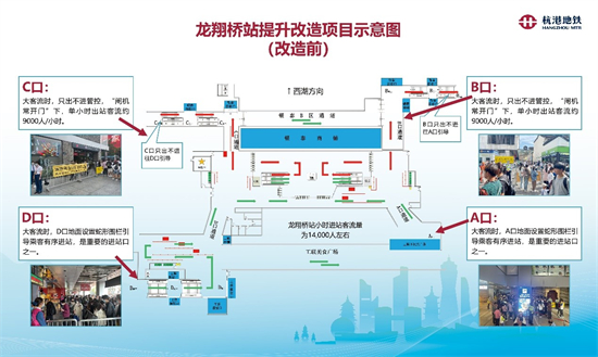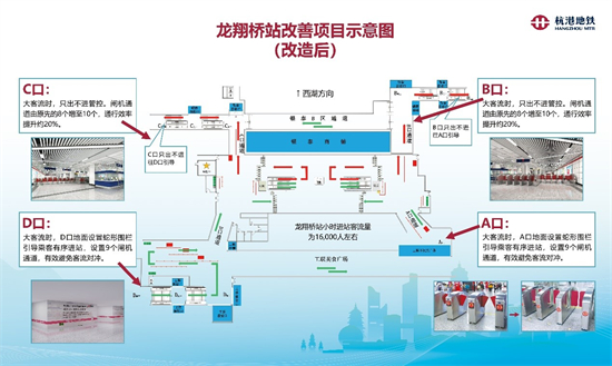 每到节假日,地铁龙翔桥站无疑是“人气王”。为进一步优化1号线龙翔桥站通行效率,记者从杭州地铁了解到,5月25日运营结束后,将开展龙翔桥站提升改善工程,通过调整车站安检机、进出站闸机位置,增加闸机设置数量,优化站内设备空间,使乘客通行更为高效、便捷。改造完成后,预计乘客通行率可提升20%左右。