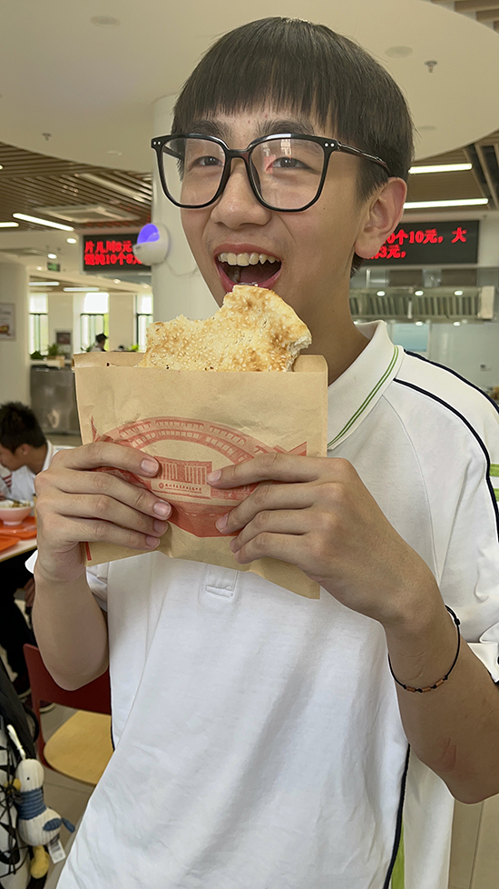入校近一年,小刘对学校食堂的美食如数家珍。“真的有很多选择。现烧的面条,现煮的小火锅,香喷喷的烤肠……太多了,都是我们平时爱吃的。学校的德胜烧饼,价格便宜、用料足,现烤现卖味道好。最便宜的白糖馅2块钱,最贵的梅干菜肉馅也就卖5块钱,里面的肉沫份量很足,一天能卖五六百只。听说,德胜这个名字,缘于原来老校区在德胜,为了记住学校在德胜办学的历史,所以把这个烧饼取名为德胜烧饼。”