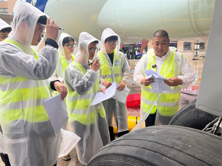 除了体验客舱服务教学课程,我们还体验了机下部分绕机检查课程。