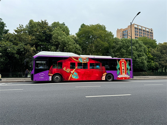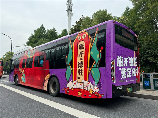 “旗袍巴士”在车身外观的主题设计上选用了红色和紫色作为主色调,红色寓意着“红运当头”,象征着考生们在考场上能够鸿运当头,发挥出色。而紫色则寓意“紫定能中”,这是取自“指定能中”的谐音,寄托了对考生们顺利考入理想学校的深情厚望。车身上绘有精美的国风旗袍图案和“必胜祝符”,色彩鲜艳,远远望去,这辆公交车仿佛真的“穿上”了一件华丽的旗袍,在送出祝福的同时也成为了杭城街道一道亮丽风景线。