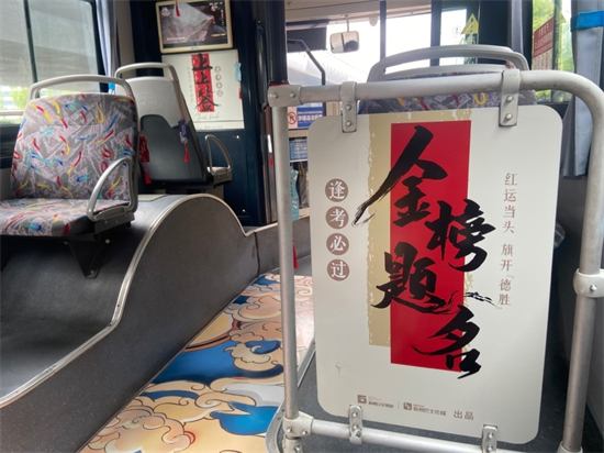 车厢内部的设计也是细节满满,心意拉满。公交车每个拉手上都匹配了不同的“祝符”,如“青云直上”“一举高中”“金榜题名”……每一个都承载着公交集团对考生的美好祝愿,希望学子们在面对高考这一人生重要时刻,在考场上保持好心态,能够好运连连,发挥出最佳状态。 “旗袍巴士”内的挡板也已经全部更新,取而代之的是设计精美的好运上上签,旨在祝愿考生不论遇到什么情况,都能沉着应对。
