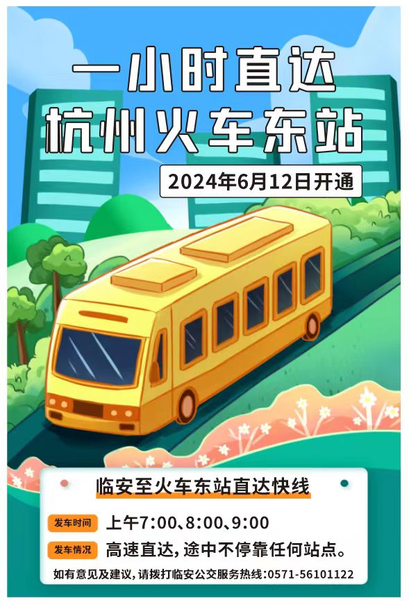 6月12日,记者从临安公交了解到,即日起,临安公交推出“临安东站至杭州火车东站直达快线”,临安东站到达杭州火车东站最快只要一小时。