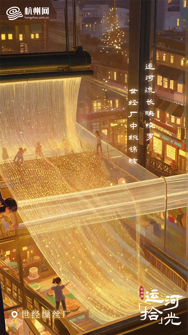 运河周边所聚集的居民、工业、生活催生了近代工业的快速发展,第一盏电灯、第一个邮局、第一个电影院……运河两岸很快便进入了“大厂时代”。运河见证杭州的繁荣与变迁,而“电灯”则象征着时代进步与发展。