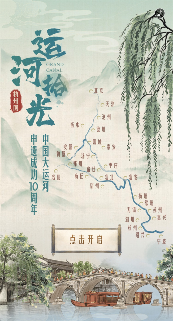 今年是中国大运河申遗成功十周年,杭州作为中国大运河的南端和浙东运河的起点,十年来精心守护,创新传承,留存下宝贵的时光记忆。对此杭州网特别策划《运河“拾”光》H5新媒体作品,记录运河与城市的发展变迁。