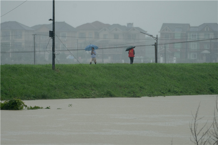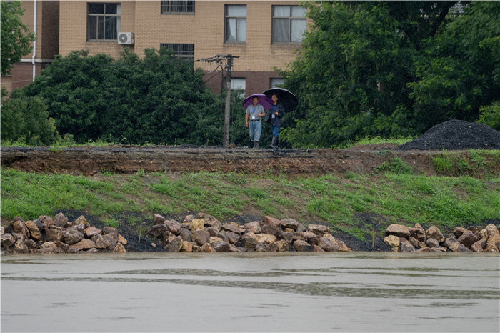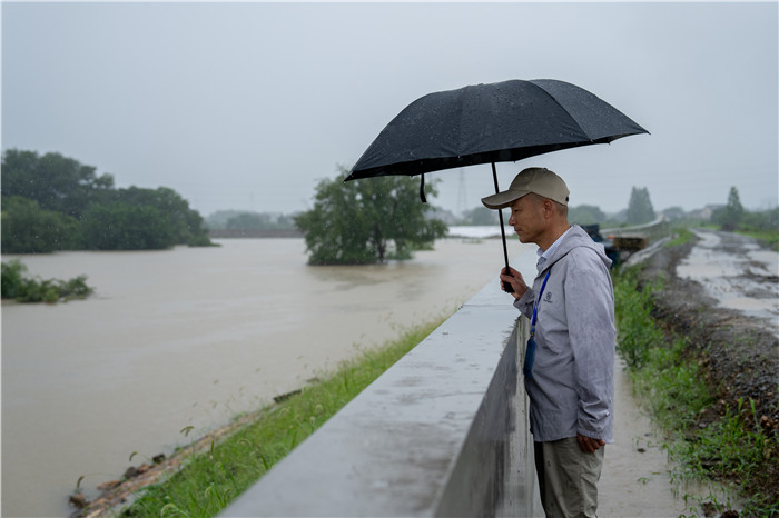 受连日来降雨影响,前天,杭州市余杭区启动西险大塘、南北湖围堤“百米一人”巡塘工作。6月25日,记者在位于余杭区的东苕溪沿岸拍下这支不一般的巡塘队伍。