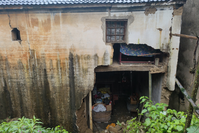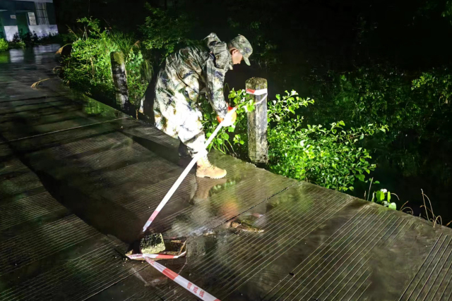 6月25日晚8点,杭州淳安县鸠坑乡金塔村志愿巡查组在夜间巡查时发现,村民严水迪家的房屋外墙壁倒塌一大部分。