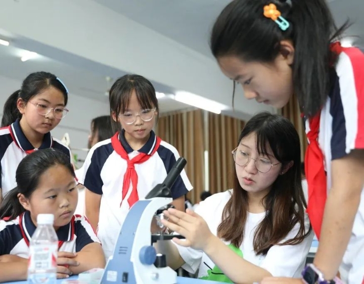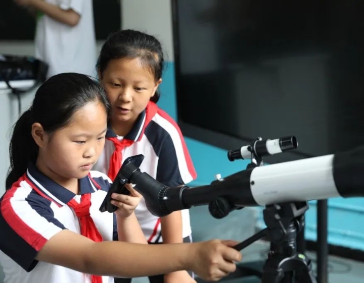 无人机、显微镜、天文望远镜、魔幻积木……博士团成员还来到学校的科普教室里,用捐赠的科学器材与学生共同组装“科学角”。学生们在博士生的指导下,边安装、边互动、边体验,在潜移默化中接受科普教育,感受科学的魅力,在心中播下科学的种子,点亮科学梦。