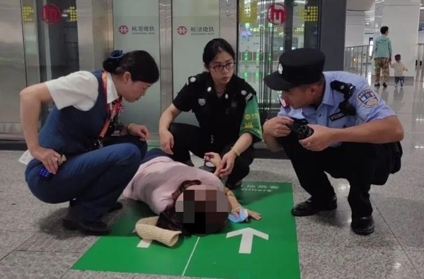 7月5日上午10点50分,张阿姨在地铁滨康路站站厅的垂梯旁突感身体不适,晕倒在地。