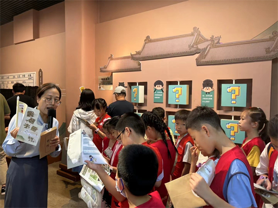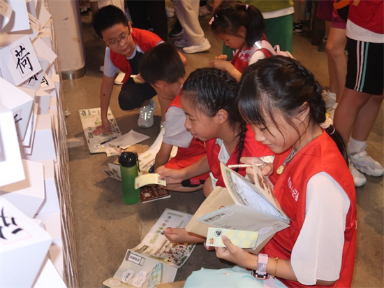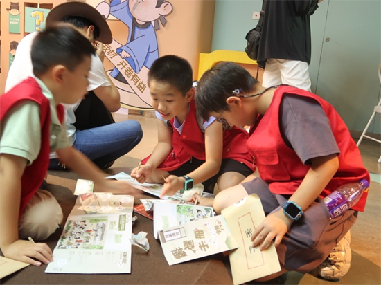 展览现场,四书五经、诗词歌赋、国学经典等宋代学子必修课程被巧妙融入各类互动环节中。作为四郎的小伙伴,小记者们穿梭于展览的各个角落,解开隐藏于展品与文字之间的线索,通过实景解谜、答题闯关,深入了解了宋代的办学形式、官方教材及考试制度。小记者们在趣味互动中,不知不觉地掌握了历史知识,感受着宋代文化的魅力。