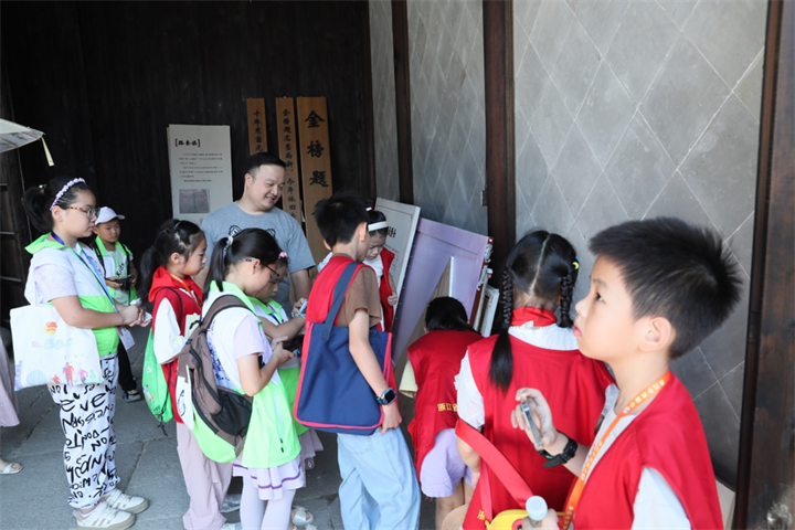 小记者们采风行程的第一站,来到了所前镇朱凤标故居。“朱凤标在朝廷当官超过了四十年,先后担任了户、刑、兵、工、吏五部尚书,因为他才华出众,大家都尊敬地称他为‘萧山相国’。曾经有个盐商叫王富贵,想给他满满一箱金银财宝,让他在盐务上帮忙,比如多卖些盐、少交点税。朱凤标马上严肃地拒绝了他……”在讲解员的带领下,小记者们穿梭于古朴典雅的院落,认真聆听、记录着这位清代廉相端正不阿、勤政爱民的故事。