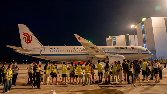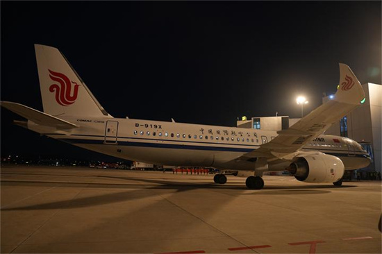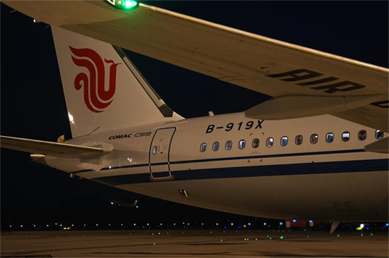 身披国旗的国产大飞机C919首次载客来杭州了。