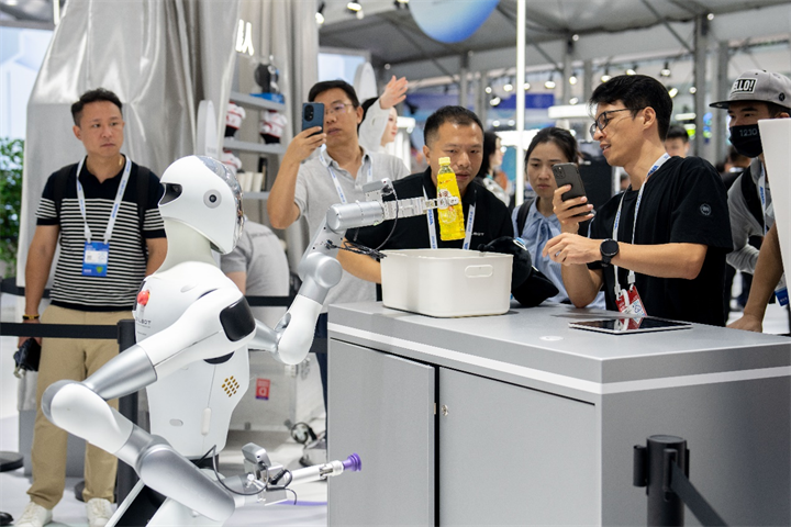 “十分钟完成一个完整的PPT。”这看似不可能的任务,现如今在AI技术的加持下成为可能。“人工智能+”馆内通义千问PPT的展台前人头攒动,这个契合打工人诉求的产品受到诸多关注。除了上传材料让软件生成PPT之外,软件还具备会议记录、提炼纲要等功能。通义PPT 软件后端开发小杜介绍,只需要上传一整个会议视频或文档,软件便能为读者做出解析,罗列大纲,再依此生成PPT,目前有20多个模板可以选择,能极大提高“打工人”的工作效率。