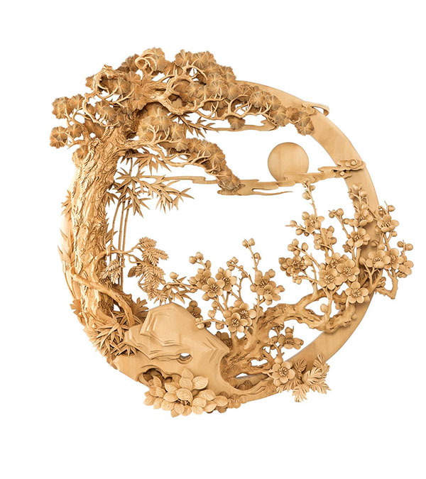 竹雕展中,浙江省工艺美术大师厉鹏强巧借天然竹根,因材施艺,作品形态生动、气韵隽永,展现了“天人同构”的艺术形式。