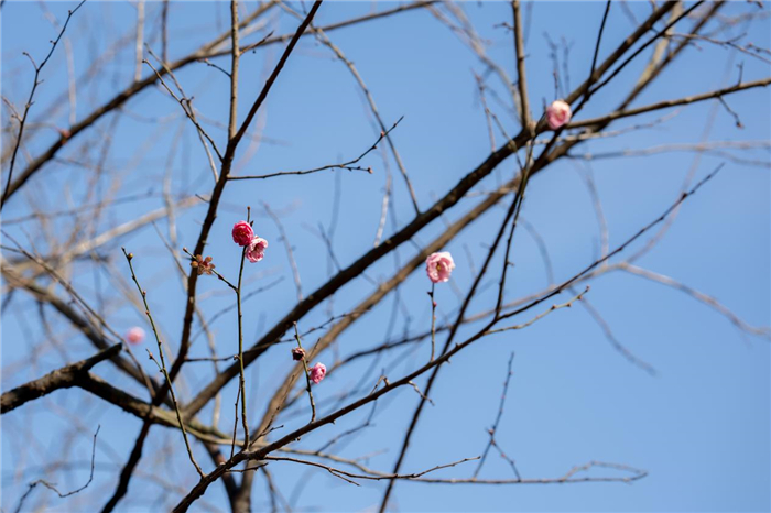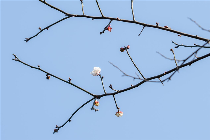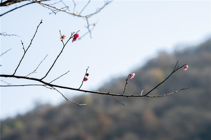 喜欢梅花的人都知道,观赏梅花分三个阶段:寻梅、探梅和赏梅。随着景区今冬第一批梅花的零星开放,可以说是进入寻梅阶段了。