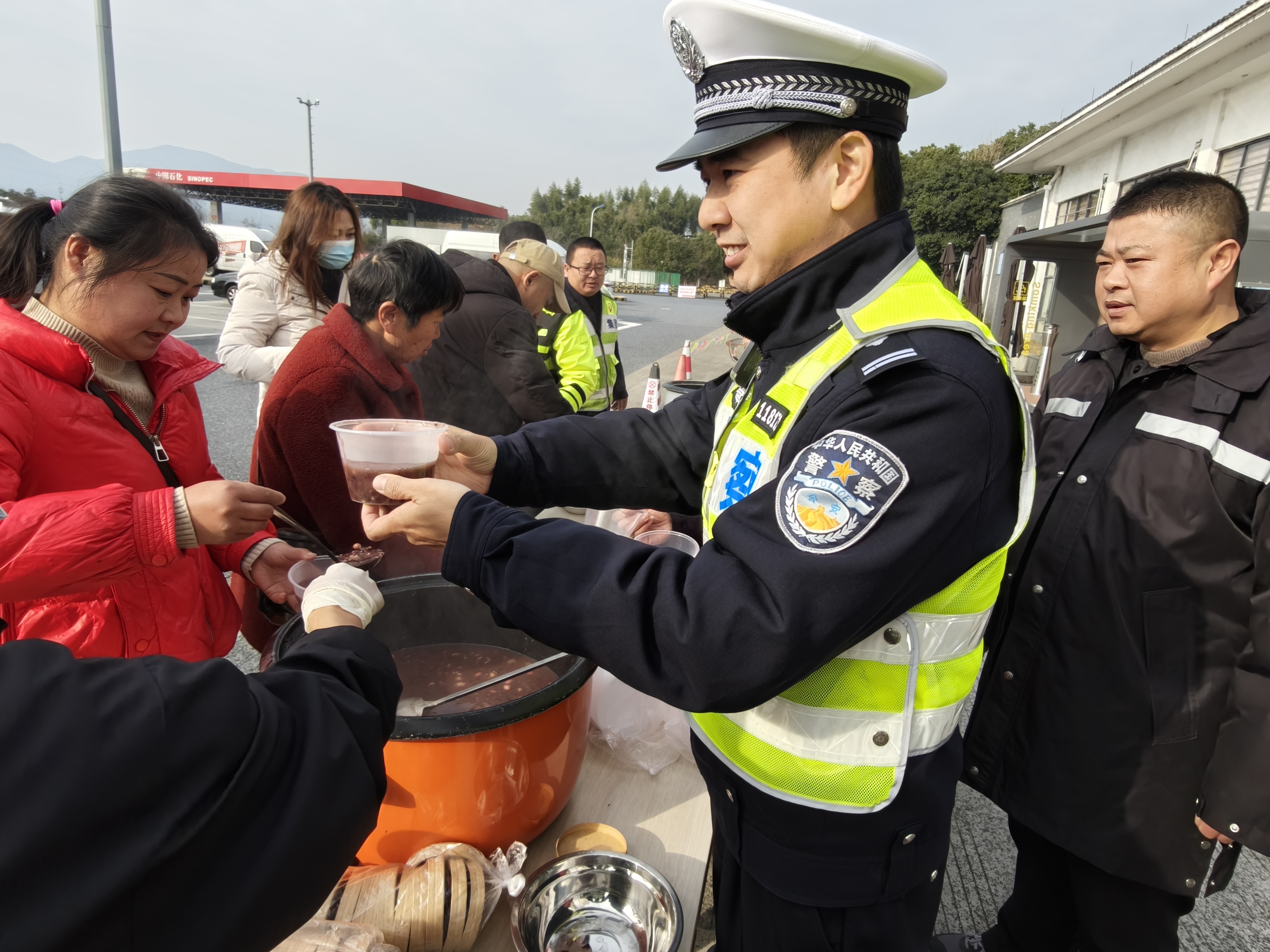 过了腊八就是年。1月7日上午,杭州公安高速交警支队四大队联合杭长高速有限公司在径山服务区同步开展腊八节活动和交通安全宣传活动。