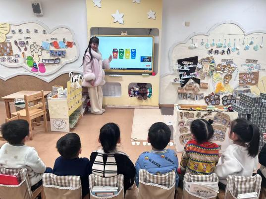 考虑到小班孩子年龄小,老师在教学时设计了“垃圾宝宝回家”的活动。在播放的视频和展示图片中,可回收垃圾、有害垃圾、厨余垃圾和其他垃圾等大家耳熟能详的垃圾类别一一呈现在小朋友的眼前。同时,老师将平时生活中常见的“垃圾”制作成了卡片,帮助孩子们理解不同的垃圾要怎样分类投放。