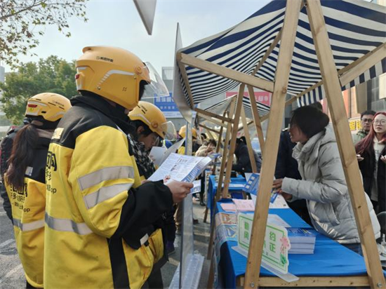 在现场另一侧,消防安全、法律咨询、反诈知识宣传摊位前也很热闹,工作人员通过发放宣传资料、现场讲解等方式,向新就业群体普及相关知识,强化他们的安全意识和法律意识。