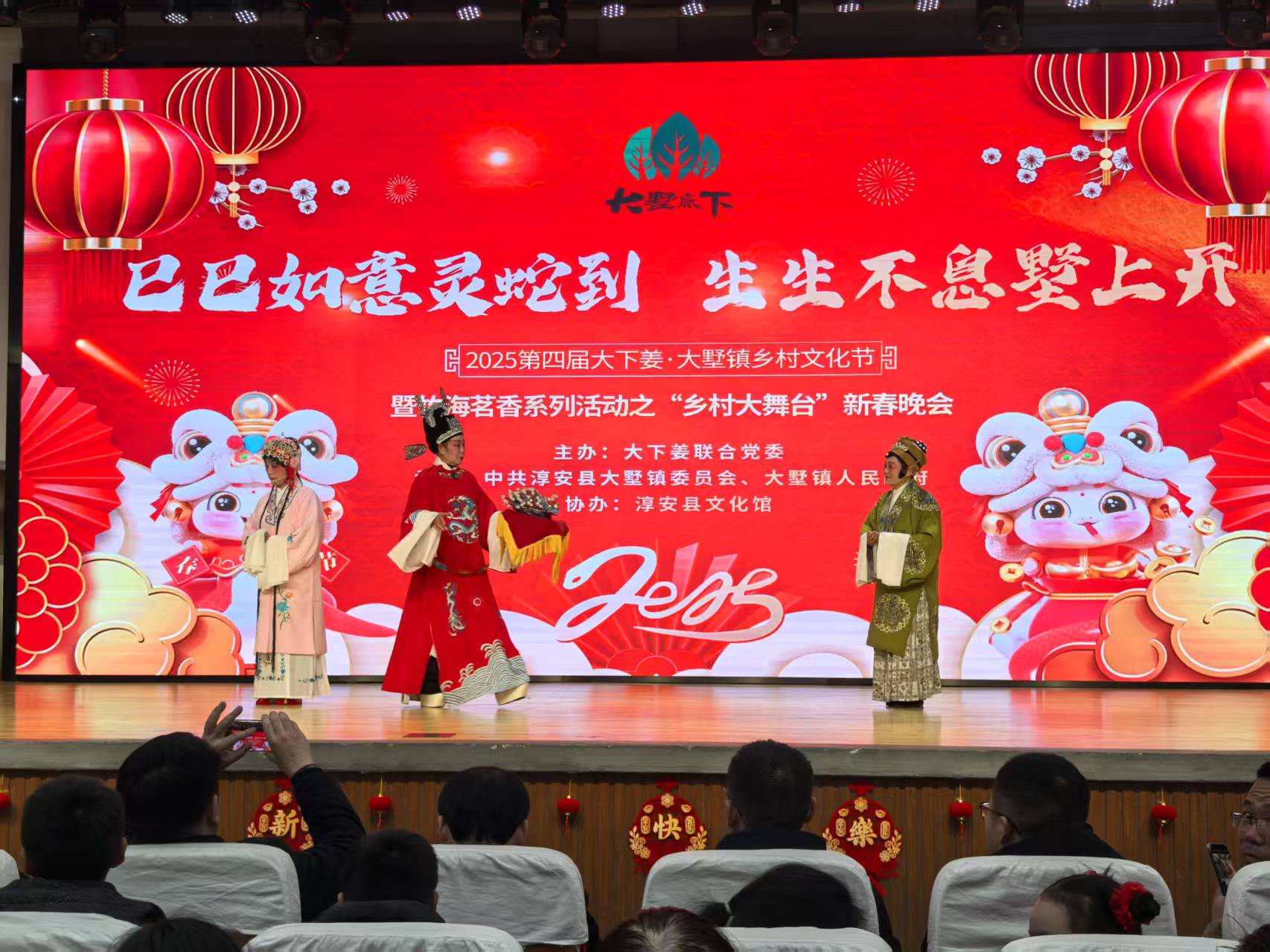 1月20日晚上7点,在杭州市淳安大墅镇综合文化站(新时代文明实践所)内,2025第四届大下姜·大墅镇乡村文化节暨竹海茗香系列活动之“乡村大舞台”新春晚会正式拉开帷幕。