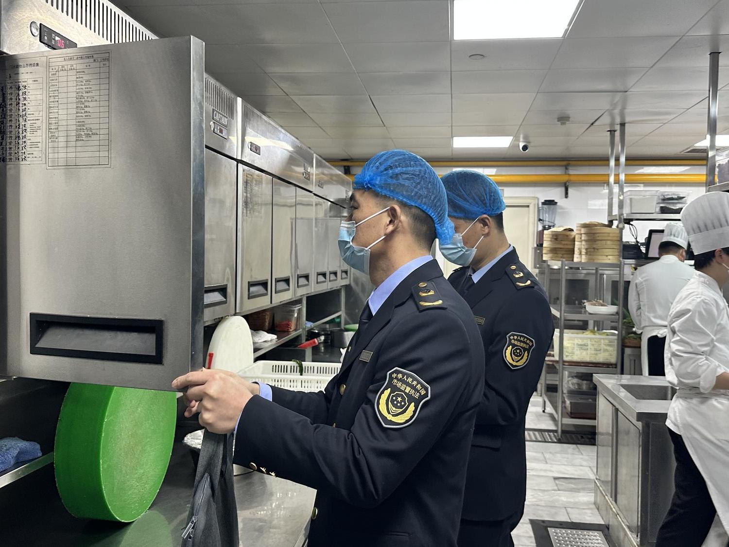 “冰铲要有固定位置摆放”“个别卫生死角注意清理”“从业人员私人物品不要随意摆放”……1月23日上午,浙江省市场监管局联合杭州市局、西湖区局开展了“年夜饭”食品安全专项检查,重点对供餐能力、食材采购、制作加工、餐具消毒、从业人员健康等进行全要素排查,及时消除食品安全隐患。