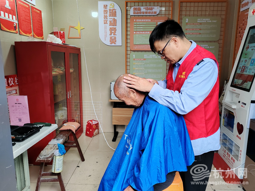 他的理发地点固定有两处:一处位于汽五分公司二楼一个办公室内,理发椅、工具等一应俱全。当司机有理发需求时,只要和兰师傅预约好,就能享受公益理发服务了;还有一处位于临平街道星仪社区的爱心理发工作室。每周二下午2点至5点,兰师傅与同事关凤亮、马春霞都会在那里,免费为辖区60岁以上的老人和环卫工人理发。