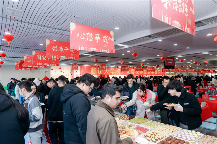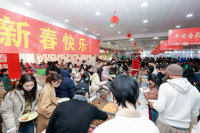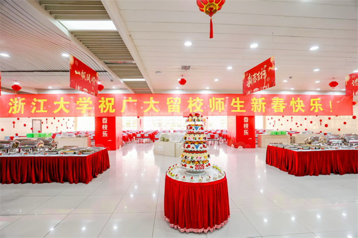 1月28日,除夕,一年一度的浙江大学留校学生年夜饭如约而至。今年,共有1000余名学生留校过年,紫金港校区100多位食堂员工留守岗位,烹制丰盛的年味大餐。